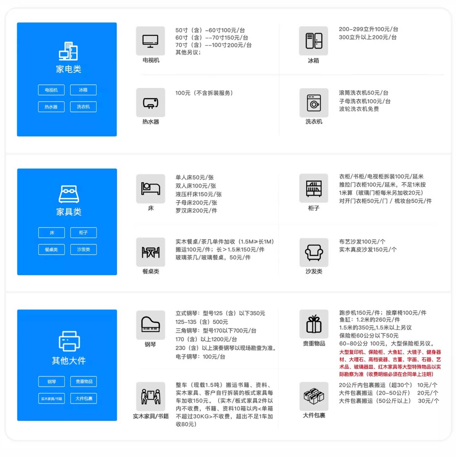 注:大件搬运费和特俗情况支出费为(非必收)满足以下列情况收费
